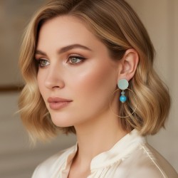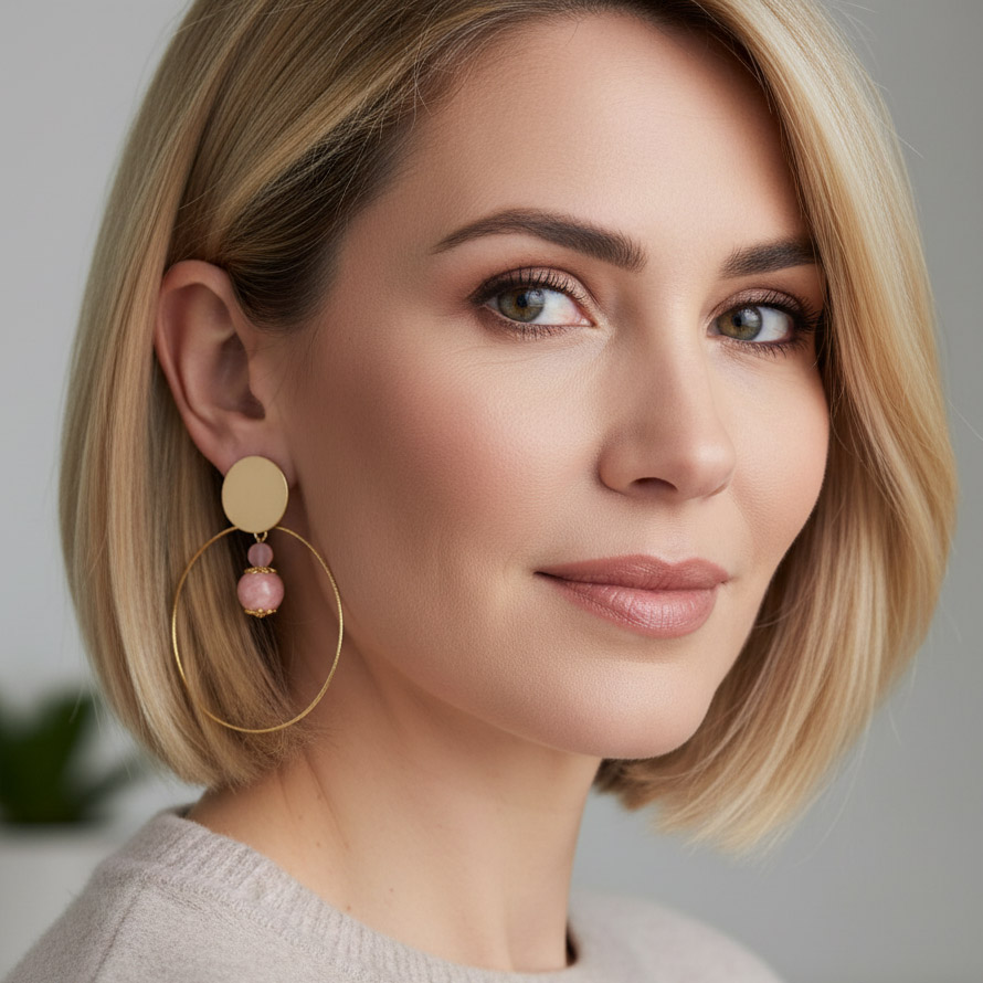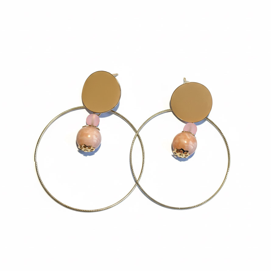 Très jolie paire de boucles d’oreilles élégantes en acier inoxydable plaqué doré et ses perles poudrées rose ou bleue ornée de leurs anneaux dorés, à vous de choisir !